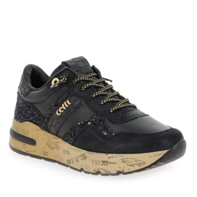 Cetti C1274 Sra Noir Or | Baskets Femme