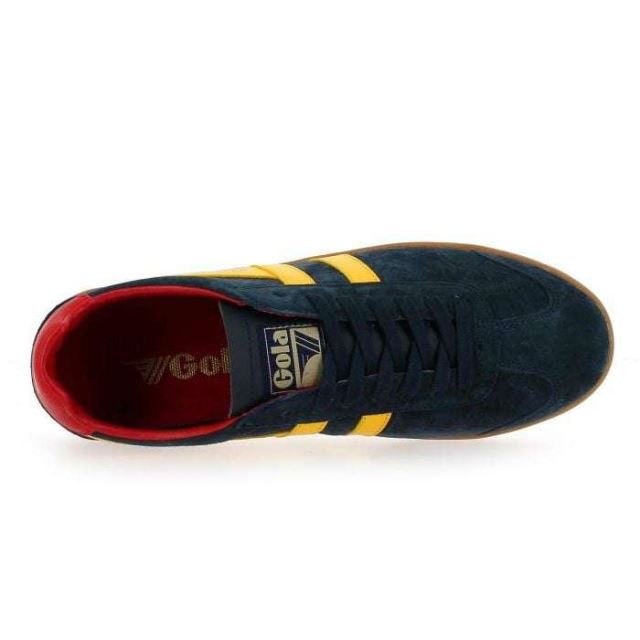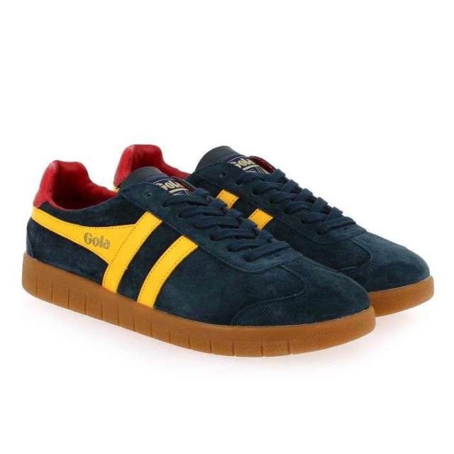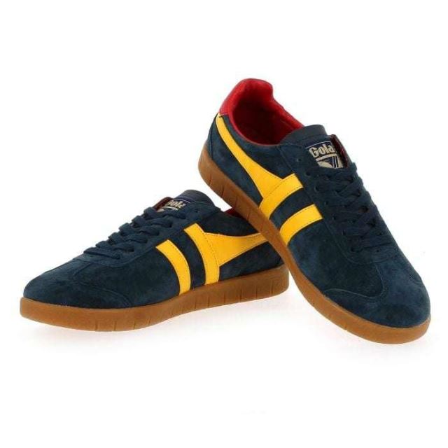 Mêlant avec brio style “sporty" et vintage, Gola sait se réinventer au fil des saisons. Dotées d’un cuir lisse et velours, avec une combinaison de couleurs jaune et marine, ces baskets apporteront une dose de peps à vos looks. De plus, la semelle camel striée accentue leur style vintage. Gola ajoute subtilement sa griffe sur la tige, la semelle et sur le col des tennis. Les lacets permettent de régler correctement la chaussure et maintiennent bien le pied. En plus d'être légères et confortables, ces sneakers s’accorderont avec toutes vos envie. Choisissez sans plus attendre votre paire de baskets Gola parmi toute la gamme de couleurs proposée !