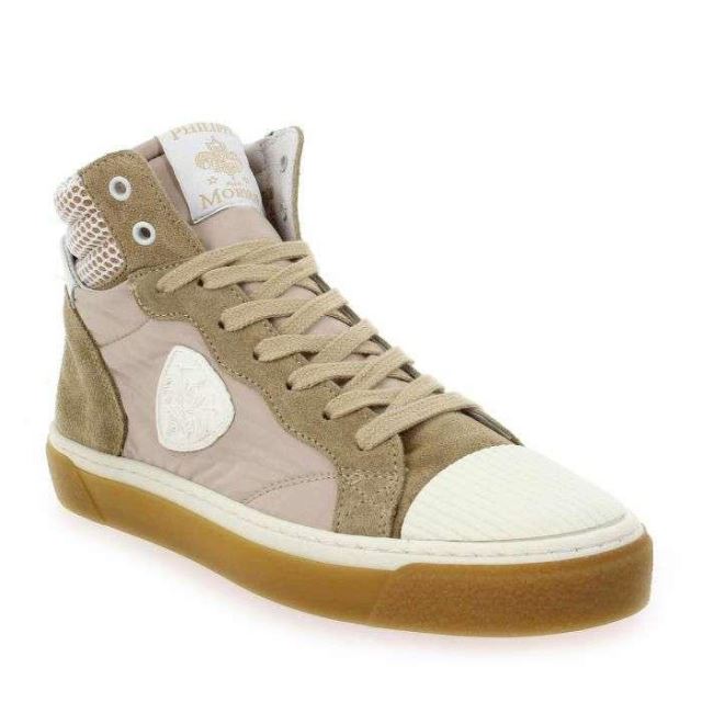 Tige en cuir velours et textile multicolore.