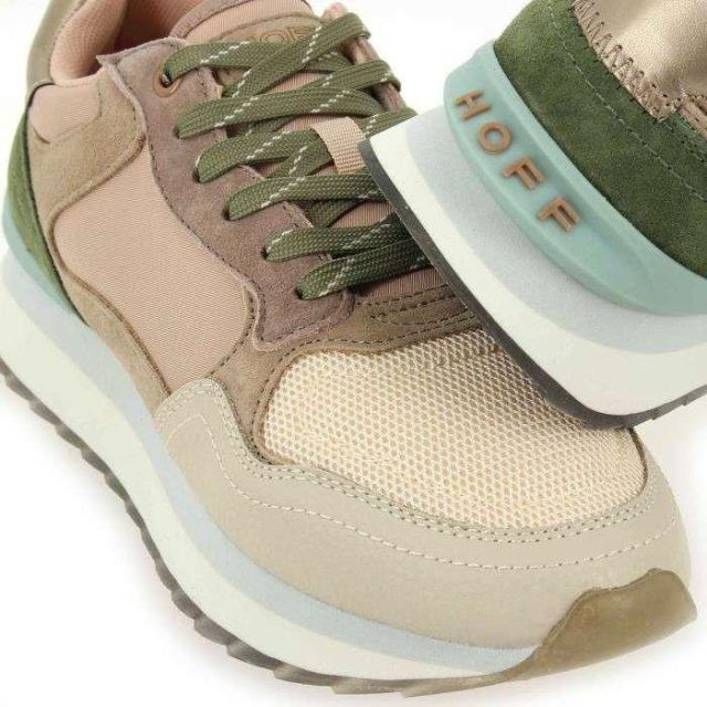 Semelle extérieure de 3 cm d'épaisseur et contrefort coloré avec logo Hoff.