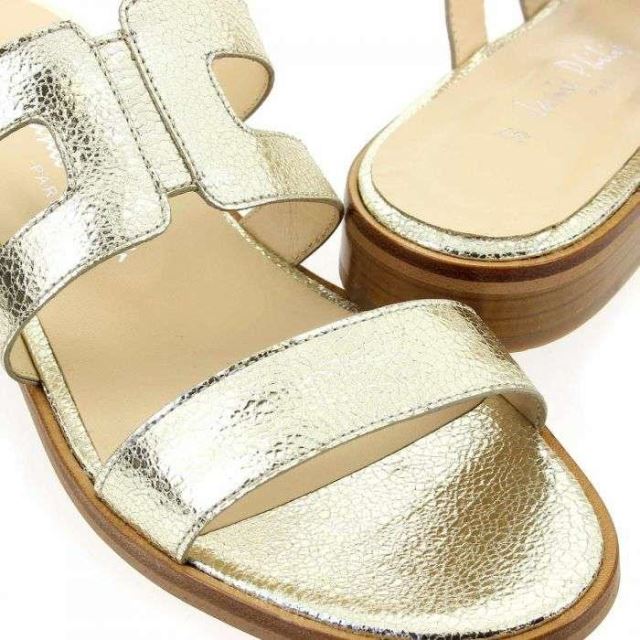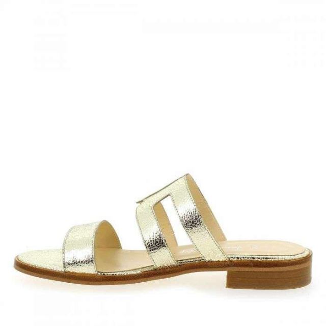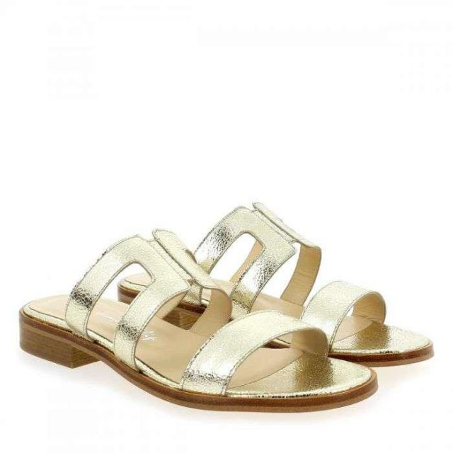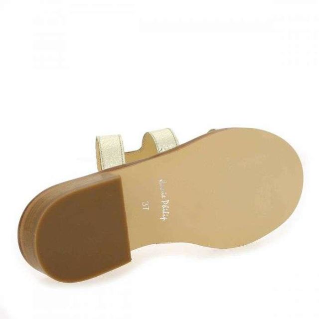 Coup de soleil sur vos pieds avec ces nouvelles beautés signées Janie Philip ! En effet, la créatrice parisienne vous propose une mule féminine et "shiny", parfaite pour les beaux jours. Dorées, ces chaussures estivales s'habillent de sangles en cuir ajourées. Vous apprécierez ce modèle "Made in Portugal", qui offrira une belle dose d'éclat à vos looks. Rien n'est oublié : le petit talon plat et rainuré assure un bon confort de marche ! Craquez pour ces pépites "OCEANE", elles vous suivront tout l'été…