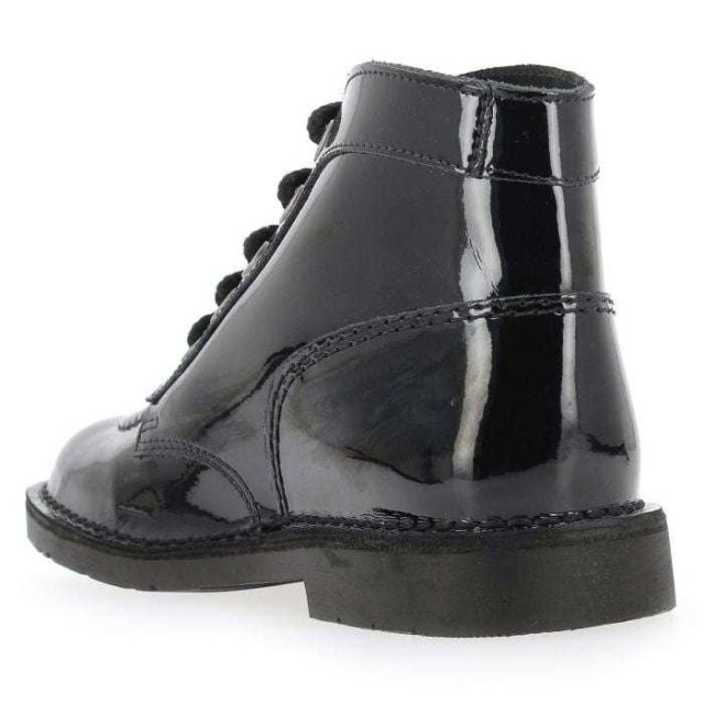 Bottines en cuir « KICK COLOR VERNIS » de Kickers. Retour dans les années seventies avec l’iconique bottine « KICK COLOR » de Kickers ! Indémodable et indétrônable, ces chaussures s’habillent en intégralité, d’un cuir vernis noir. Vous apprécierez ce modèle aux finitions parfaites et qui s’accordera avec une grande variété de tenues. Maligne, la marque ajoute ses traditionnelles étiquettes vertes et rouges, afin de différencier le pied gauche du pied droit. Ces bottines sont également reconnues pour leur confort. Rien à redire : ces Kickers sont des basiques à posséder…
