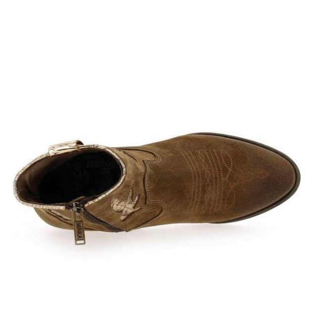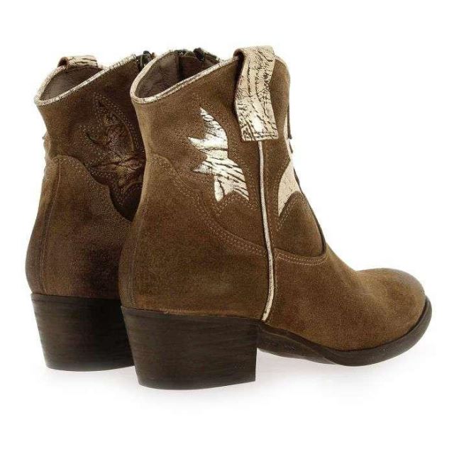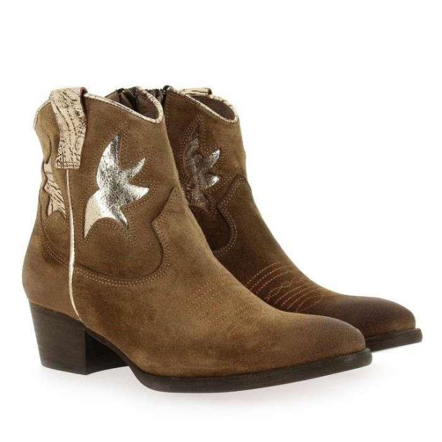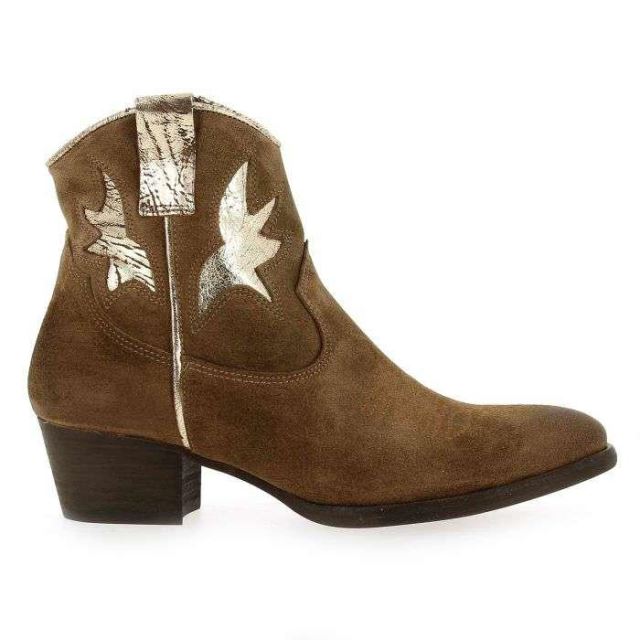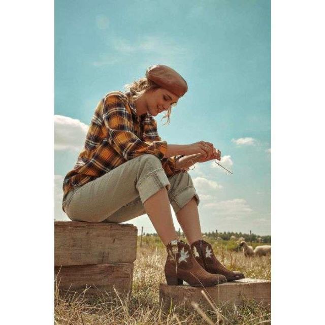 Une ambiance “western" règne sur la nouvelle collection Minka Design ! Laissez-vous charmer par le design unique et ultra “trendy" de ces tiags en cuir velours cognac. En effet, ces chaussures sont sublimées par des détails finement brodés sur l’empeigne, puis par des motifs métallisés sur la tige. Vous apprécierez ces chaussures “made in Portugal", qui apporteront une belle dose de caractère à vos looks. La courte tige, le petit talon biseauté et le bout légèrement arrondi font parti des codes emblématiques de la fameuse tiag, petite soeur de la santiag. Pour plus de praticité, un zip intérieur a été ajouté. Réveillez la “cowgirl" qui sommeille en vous avec Minka Design !
