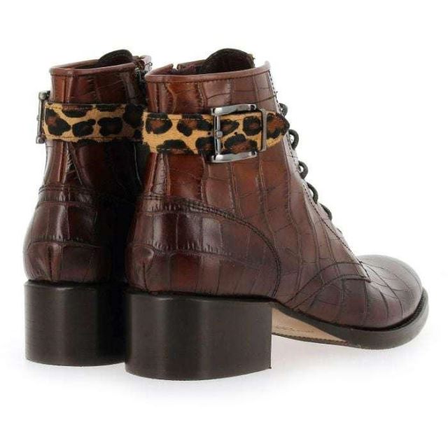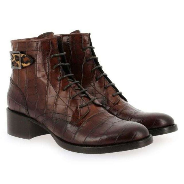 Avis aux aficionados des chaussures Muratti : la marque portugaise vous réserve bien des surprises cette saison ! En effet, elle sublime ses plus beaux classiques de détails furieusement “trendy". Ici, c’est la séduisante “ABYGAEL" qui affirme son caractère avec sa robe de cuir croco et sa petite sangle léopard. Chics et rebelles, ces bottines "Made in Portugal" revendiquent aussi leur esprit “boyish". Le petit talon épais assure un confort de marche optimal. En plus des lacets, un zip intérieur a été ajouté pour plus de praticité. Rien à redire : vos “ABYGAEL" ne vous quitteront plus d’une semelle…