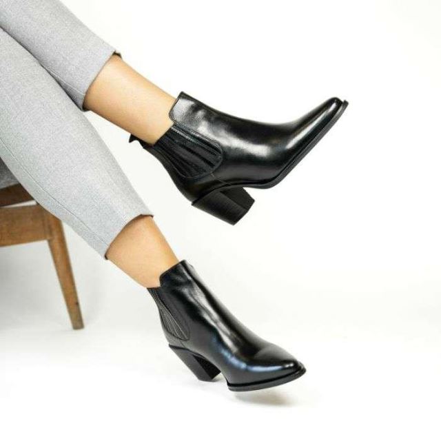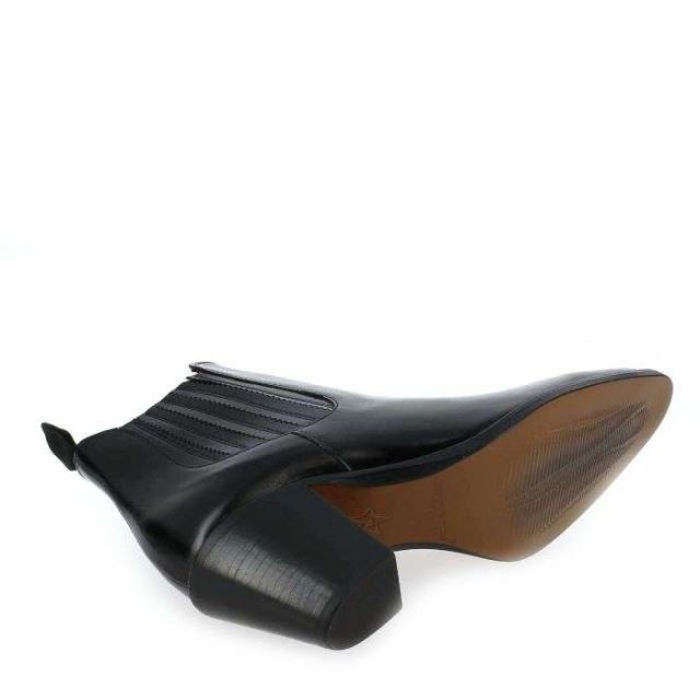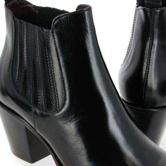 Du noir au kaki en passant par le beige et le cognac, ces boots aux allures de tiags feront craquer toutes les cowgirls ! En effet, la marque Muratti s'inspire savamment de la mode western pour vous séduire. Habillées d'une robe de cuir lisse et noire, ces chaussures s'associeront avec toutes vos tenues quotidiennes. Avec son bout doucement pointu, son talon biseauté et sa courte tige, cette chaussure possède tous les codes des tiags, petites sœurs des incontournables santiags. Vous serez comblée par la hauteur du talon, qui garantit féminité, confort et stabilité. Camouflés par des pièces de cuir, les élastiques permettent d'enfiler facilement le modèle et assurent un excellent maintien du pied. Rien à redire : vos "RESEDA" se feront une belle place dans votre shoesing !