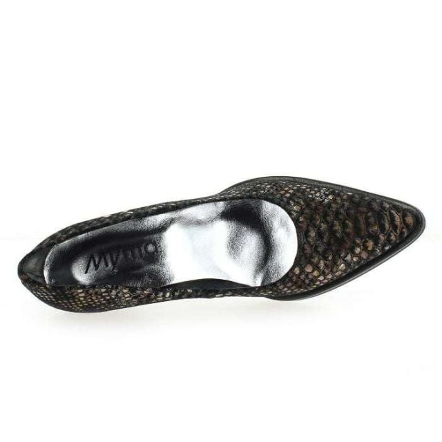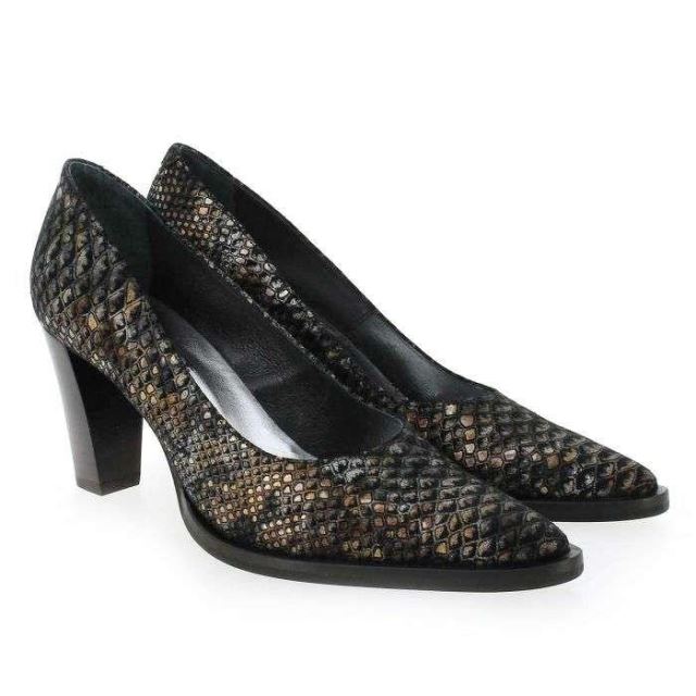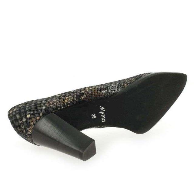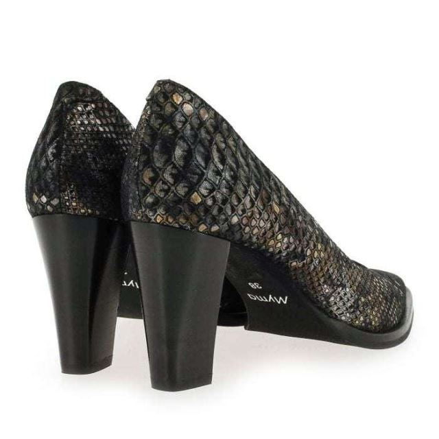 Modernes et élégants, ces escarpins “made in Portugal", sublimeront toutes vos tenues. Habillées d’un cuir velours irisé, ces chaussures sont réveillées par un motif python très tendance. Avec leur bout pointu élancé, puis leur talon épais, ces escarpins vous assureront une démarche affirmée, caractérielle et féminine. Petit plus à l'arrière: l’ajout d’une couture décalée, qui est le signe d’une chaussure de qualité ! Craquez, ces escarpins signés Myma, sont des valeurs sûres du shoesing féminin !