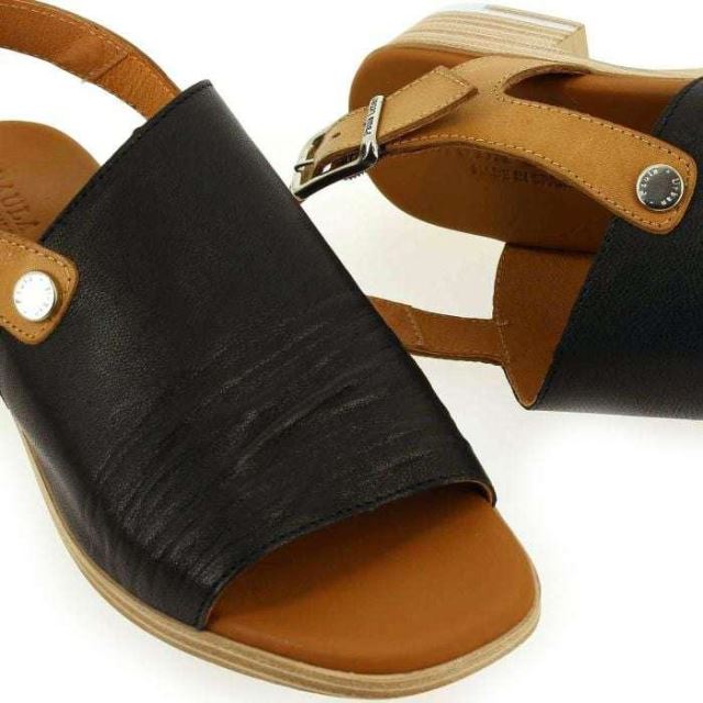 Paula Urban 9367 Noir Camel | Sandales Femme