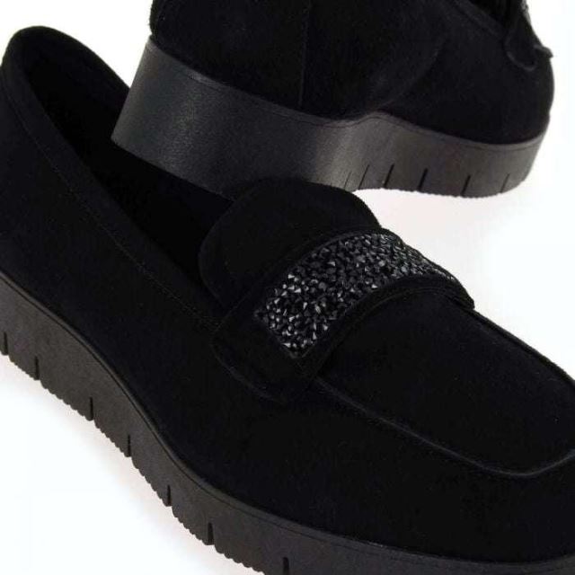 Trop longtemps réservées aux hommes, les chaussures “boyish" se réinventent & deviennent le symbole d’une poignante féminité ! La preuve ici, avec ces mocassins signés Reqins. Noires, ces chaussures s’habillent d’une robe de cuir velours et se parent de détails précieux. En effet, des cristaux agrémentent l’empeigne, tandis que des paillettes décorent brillamment le contour de la semelle. Faciles à enfiler, ces mocassins sont aussi très confortables avec leur semelle épaisse et ultra-légère. Rien à redire : il est temps de briller sur le pavé avec ces splendides mocassins “NALA"…