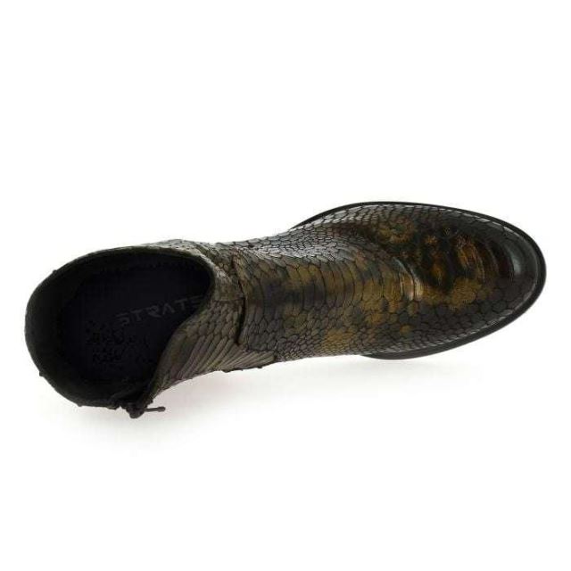 Féminin, rock, militaire ou “wild" : la marque italienne Strategia fait le tour du monde des tendances ! Au programme ? Des collections uniques, modernes, fastueuses et caractérielles ! Ici, elle propose des boots sauvagement “trendy" avec leur cuir à l’impression croco. Vous aurez fière allure avec ces chaussures “Made in Italy". Le talon graphique mettra en valeur votre silhouette féminine, tout en vous assurant un confort de marche optimal. Pour plus de praticité, un zip intérieur a été ajouté. Envie d'un look rock'n'chic ? Accordez ces boots italiennes avec un top à motif, un slim enduit et un perfecto en cuir…
