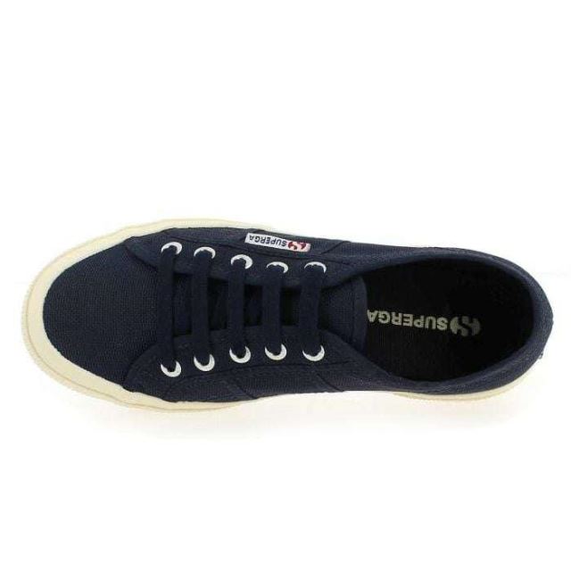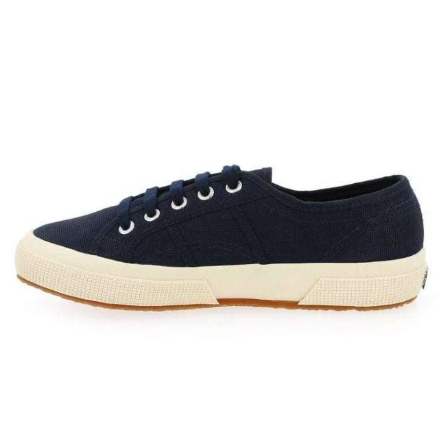 Baskets en toile « 2750 » de Superga. Mythique et ultra-tendance, la tennis « 2750 » fait son « come-back » cet été ! Plus seulement destinées au vestiaire sportif, ces chaussures conquièrent les quatre coins du monde et toutes les générations. Résolument tendance avec sa robe en toile marine, cette basket ne vous laissera pas indifférente. En plus d'être stylée, elle est d'une légèreté incomparable et vous offrira un confort de marche optimal. Rétro avec leur épaisse semelle et leurs formes arrondies, ces chaussures possèdent tous les atouts. Rien à redire : set gagnant infaillible avec ces tennis « Made in Italy » !