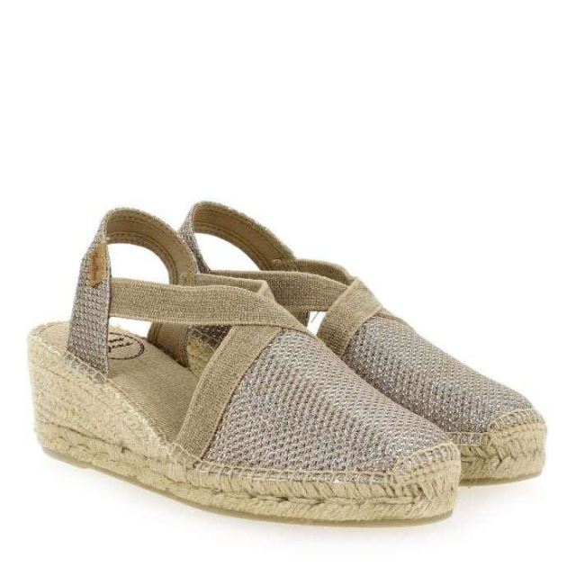 L'espadrille compensée: la valeur sûre du shoesing estival ! Ici, Tonis Pons vous offre deux versions aussi ravissantes l’une que l’autre. Travaillées dans le détail, ces chaussures s’habillent d’une magnifique toile irisée platine ou noire. Vous apprécierez leurs sangles croisées et élastiques : idéales pour vous assurer un enfilage facile, ainsi qu’un bon maintien du pied. Le talon compensé en jute est le parfait compromis entre féminité, confort et stabilité. Rien à redire : craquez pour ces espadrilles artisanales, elles illumineront toutes vos envies…